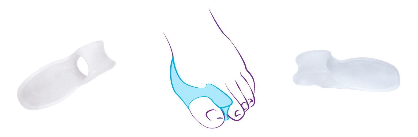 Разделители (обычно гелевые) размещаются между первым и вторым пальцами, предотвращая их соприкосновение и уменьшая нагрузку на сустав большого пальца. Они удобны для повседневного ношения и помогают снизить дискомфорт при ходьбе, сохраняя при этом свободу движения.