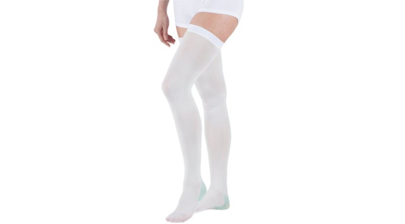 - Компрессионные чулки — один из самых распространенных вариантов. Они охватывают ногу от стопы до бедра, обеспечивая поддержку вен и снижая риск развития варикозного расширения вен.