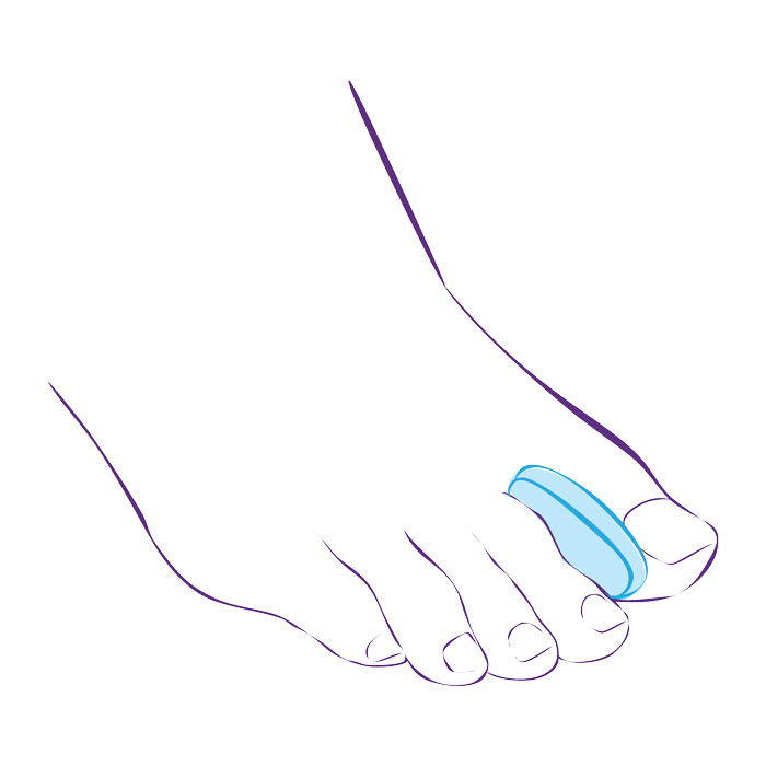 • силиконовые межпальцевые вкладыши размещают более широкой стороной с подошвенной стороны стопы