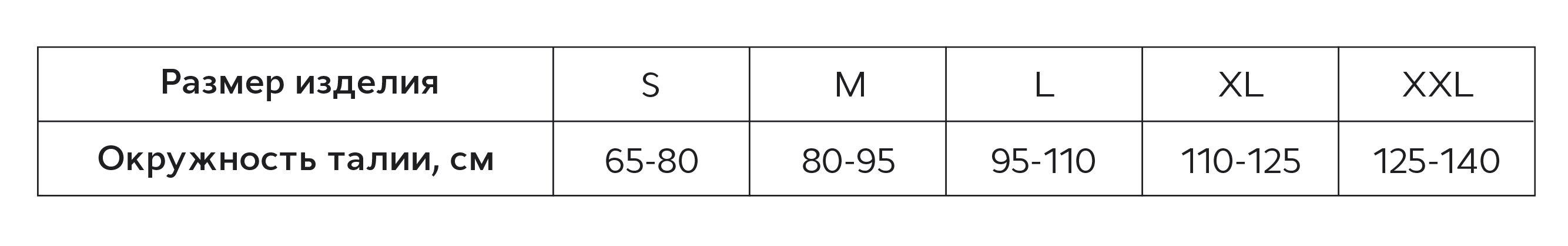 Если обхват талии пользователя находится на пересечении двух размеров в размерной таблице, рекомендуем выбрать больший размер изделия.