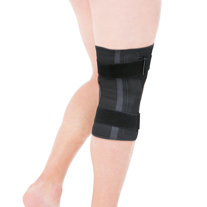 - При надевании изделия необходимо следить за тем, чтобы коленная чашечка была расположена в отверстии бандажа. Ребро жесткости должно располагаться чуть сзади от боковых осей коленного сустава