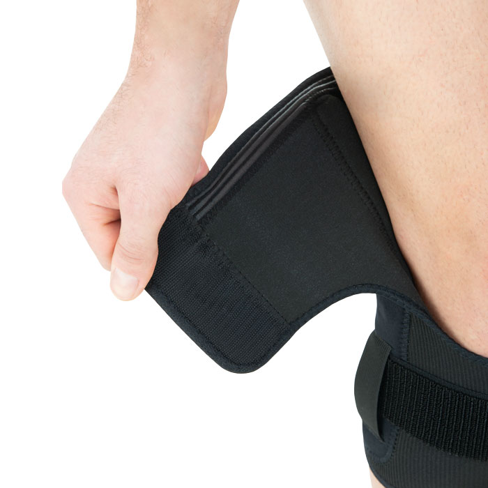 - дополнительные ленты с застежками «Велкро» по верхнему и нижнему краям бандажа способствуют лучшей фиксации изделия в области коленного сустава