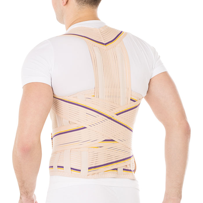 - два пластиковых ребра по передней поверхности поддерживают абдоминальную область и препятствуют скручиванию корректора осанки
