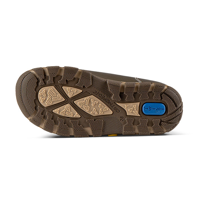 - Износостойкая подошва с каблуком Томаса, протектором для амортизации и небольшим пяточным перекатом и пяточным амортизатором, носочная часть подошвы соответствует контуру пальцев стопы детей в этом возрасте